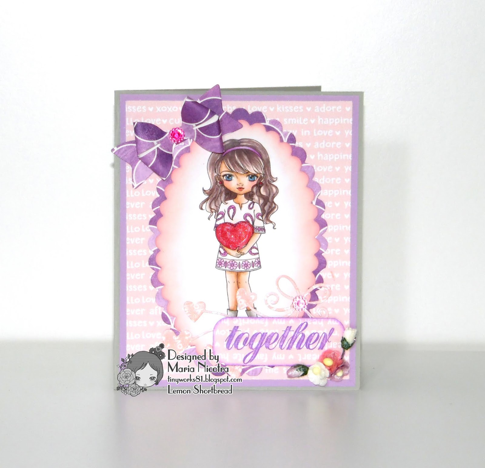 Per questa card ho utilizzato 60s Love Peace Girl colorata con i copic. La carta usata Simple Stories Kissing Booth, Il timbro e di Mama Elephant timbrato con l'oxide wilted violet. Per sfumare il timbro ho usato tattered rose worm lipstick. I fiori sono di I Am Roses dove ho applicato l'acqua scintillante di tommyart.